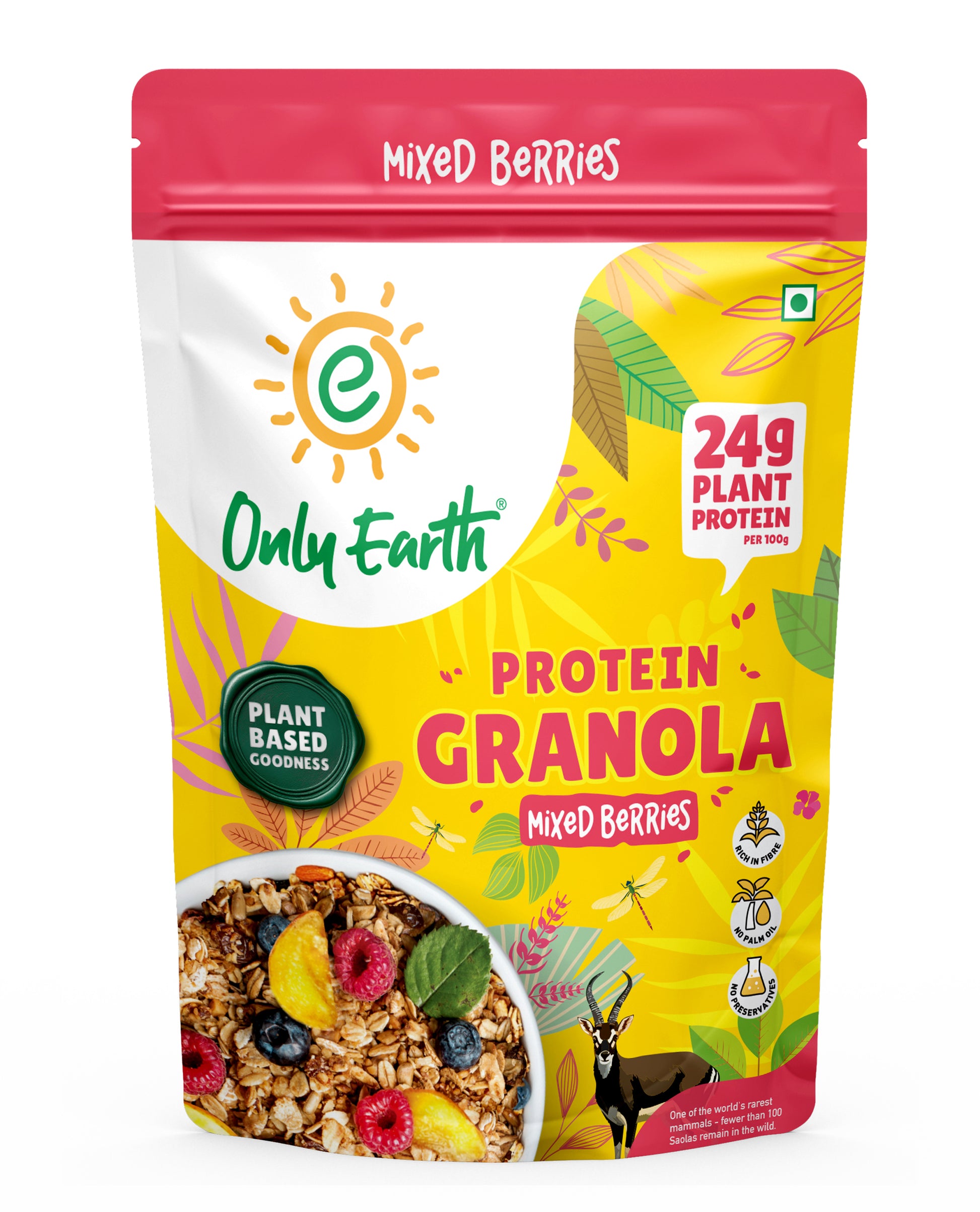 π HIGH PROTEIN GRANOLA β Only Earth Protein Granola Mixed Berries delivers 24g clean plant protein per 100g, made with pea protein, peanut butter, soy crisps & rolled oats for a nourishing start to your day.
